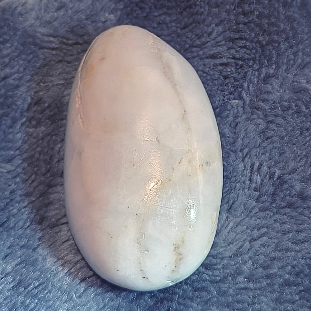 Φυσικός γαλακτώδης χαλαζίας με απαλές εσωτερικές «φλέβες» και διάσπαρτα σιδηρούχα εγκλείσματα.